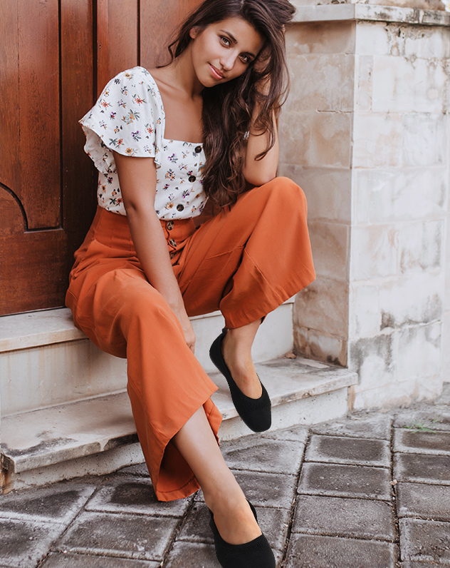 The perfect pair of day-to-day, breathable flats you are looking for is here! Super stretchy, flexible upper, padded heel, spacious toe box, and a pressure-relieving insole. These flats are perfect for everyday wear. Pair them with skinny jeans and a white shirt or mom jeans and a tee for a casual yet smart look.