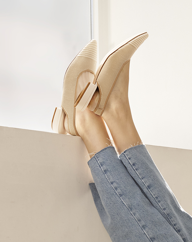 - Eco-Friendly Upper: These slingback flats are made with fabric that is sustainable and uses threads made from recycled plastic bottles. Not only is the fabric breathable but is also soft to the touch.
